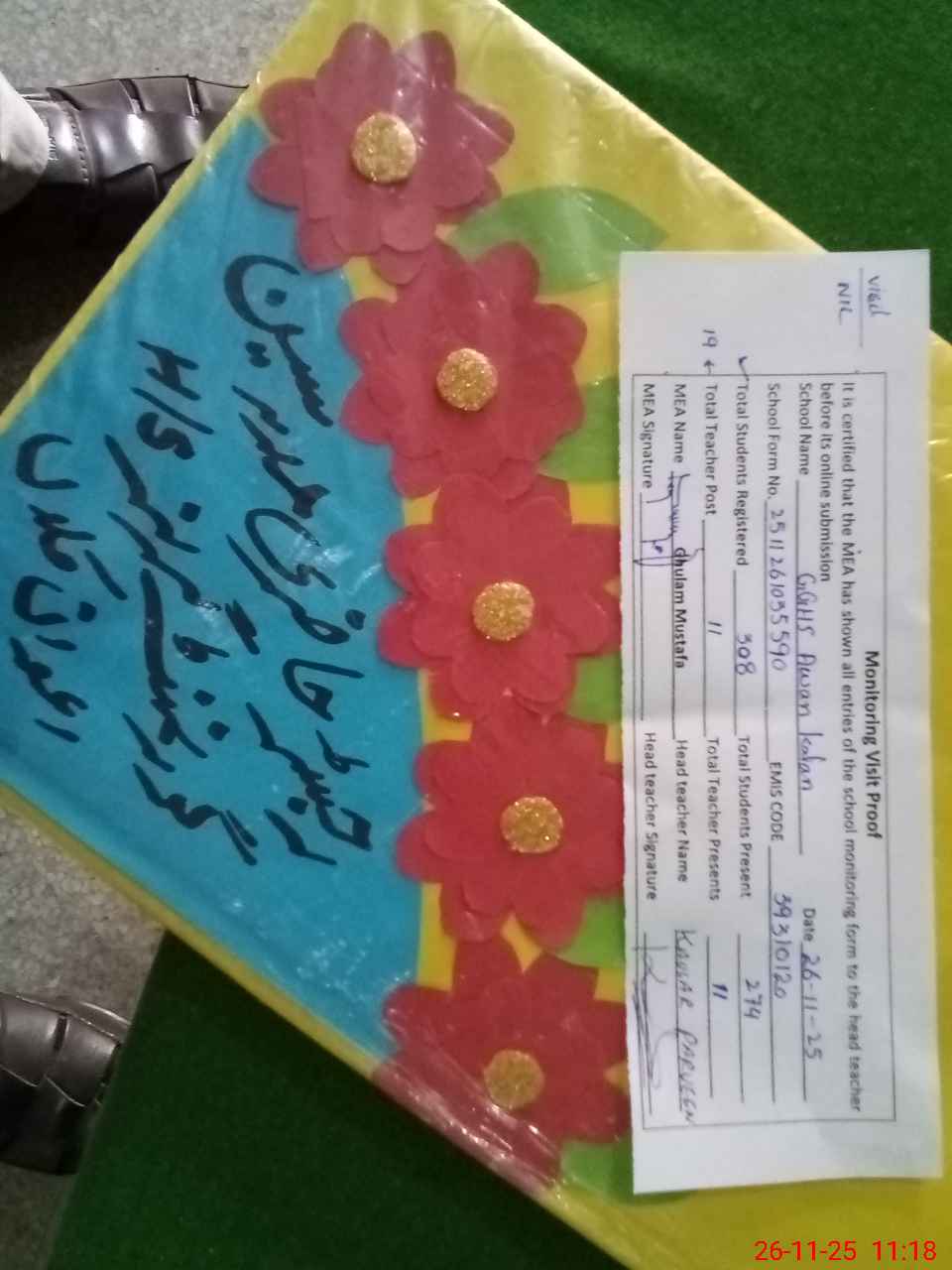 | Attendance Register | Head Teacher | MEA with School | Visit Proof |