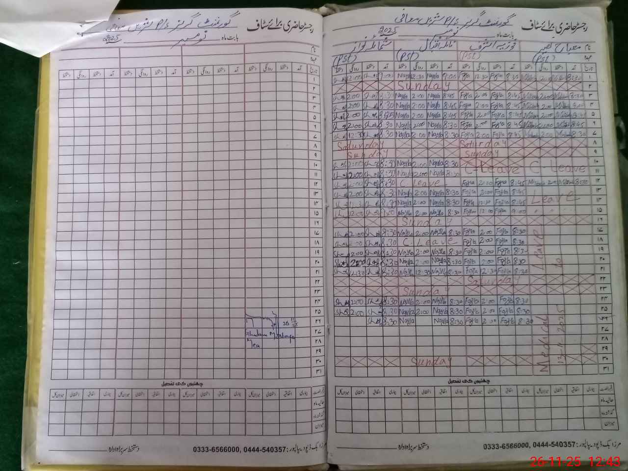 | CNIC | Full Name | Designation | R/C | Absence During Last Calender Month |
