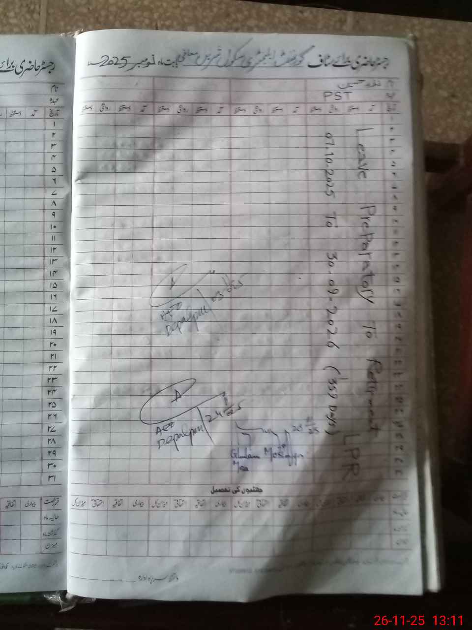 | Leave | Duty | Absent | Maternity | Medical | Ex- Pak |