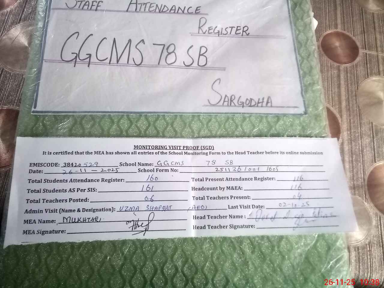 | Monitoring Date: 26-11-2025 | Start Time: 26-11-2025 10:01 AM | End Time: 26-11-2025 10:38 AM | Name of MEA: MU**** AH**** | |