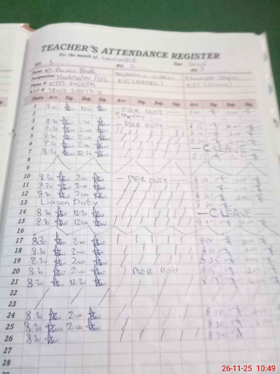 | Name: MU**** AW**** Designation: (School Headmaster's/Headmistress's) S.S.T.(SCI) Phone/Cell Number: 03**** |