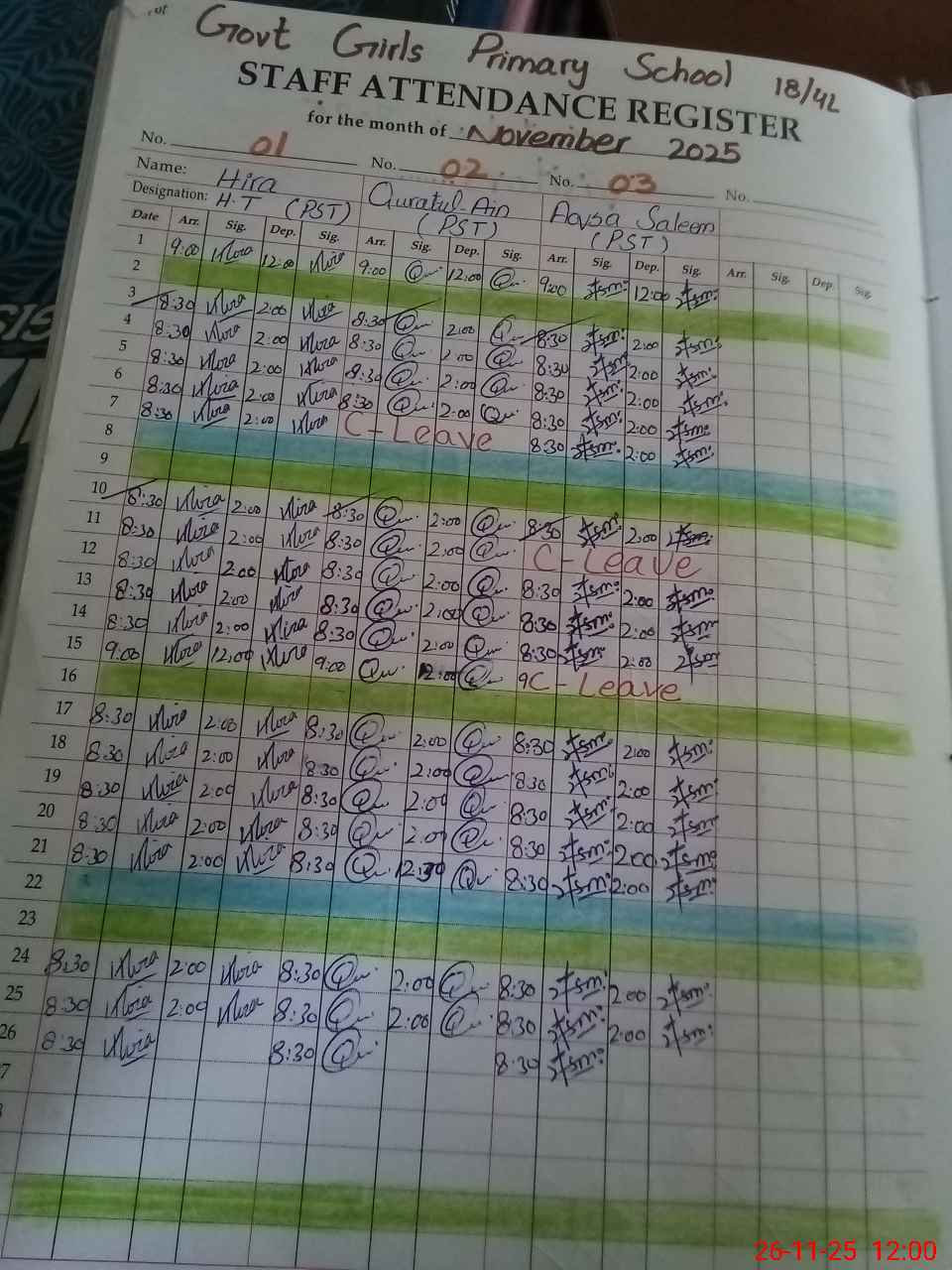 | CNIC | Full Name | Designation | R/C | Absence During Last Calender Month |