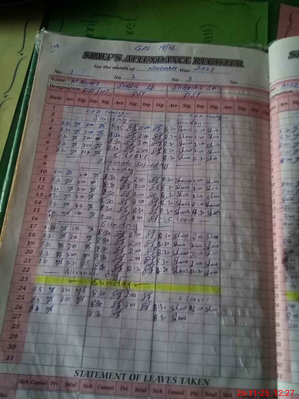 | Leave | Duty | Absent | Maternity | Medical | Ex- Pak |