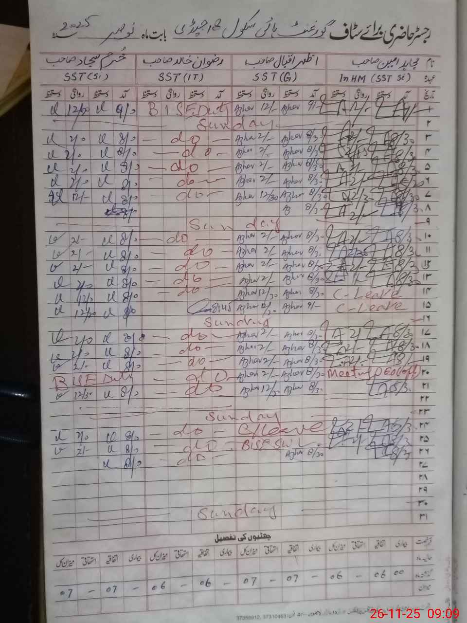 | 36**** | Ri**** Kh**** | SST | Regular | 0 | 0 | 0 | 0 | 0 | 0 | 0 | 0 | 0 | Exam Duty |