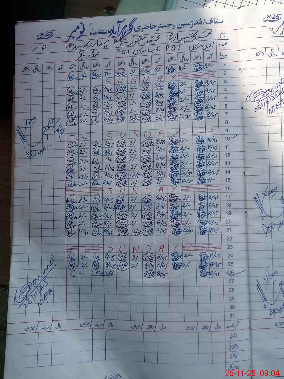 | Name: MU**** SH**** Designation: (School Headmaster's/Headmistress's) PST Phone/Cell Number: 03**** |
