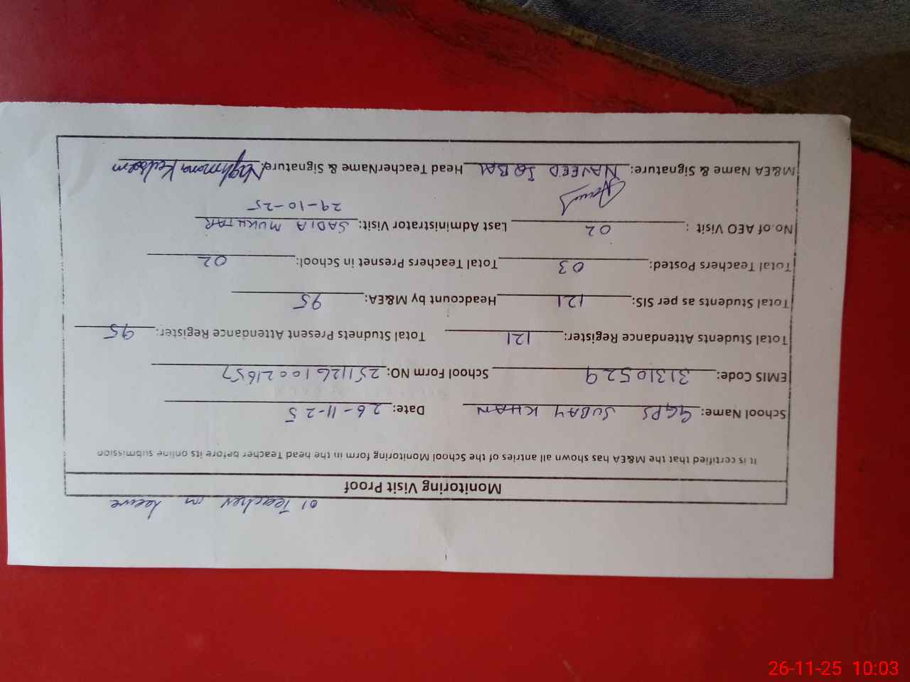 | EMIS Code: 31310529 | Name of School: GGPS SUBAY KHAN | |||