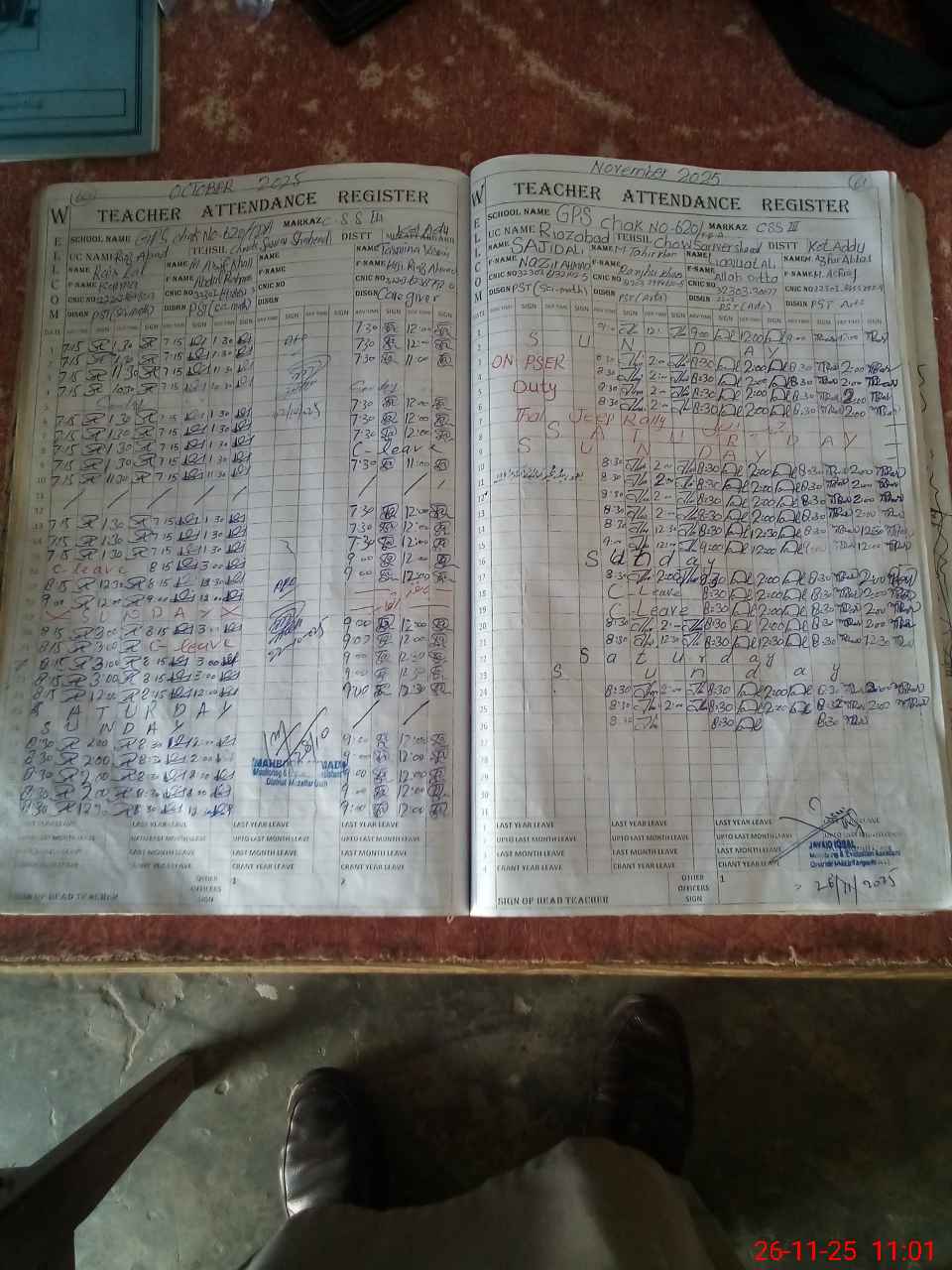 | CNIC | Full Name | Designation | R/C | Absence during last cal. month |