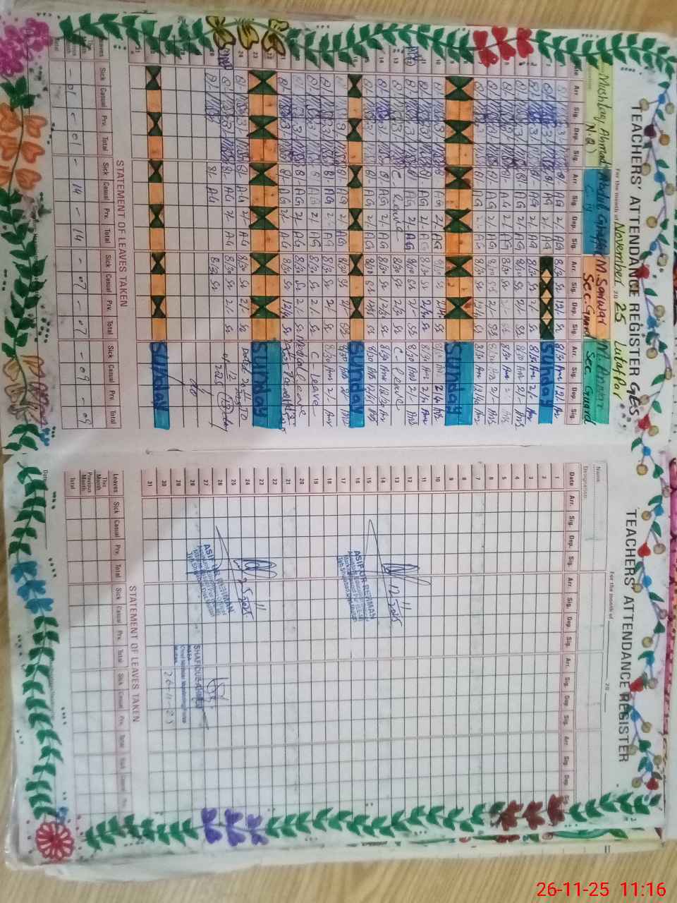 | Leave | Duty | Absent | Maternity | Medical | Ex- Pak |