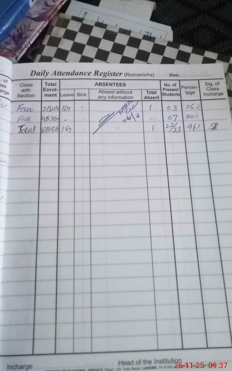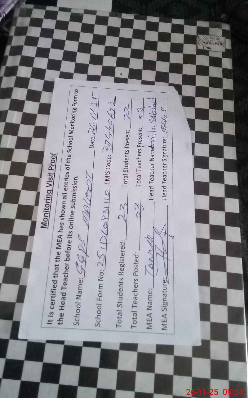 | Attendance Register | Head Teacher | MEA with School | Visit Proof |