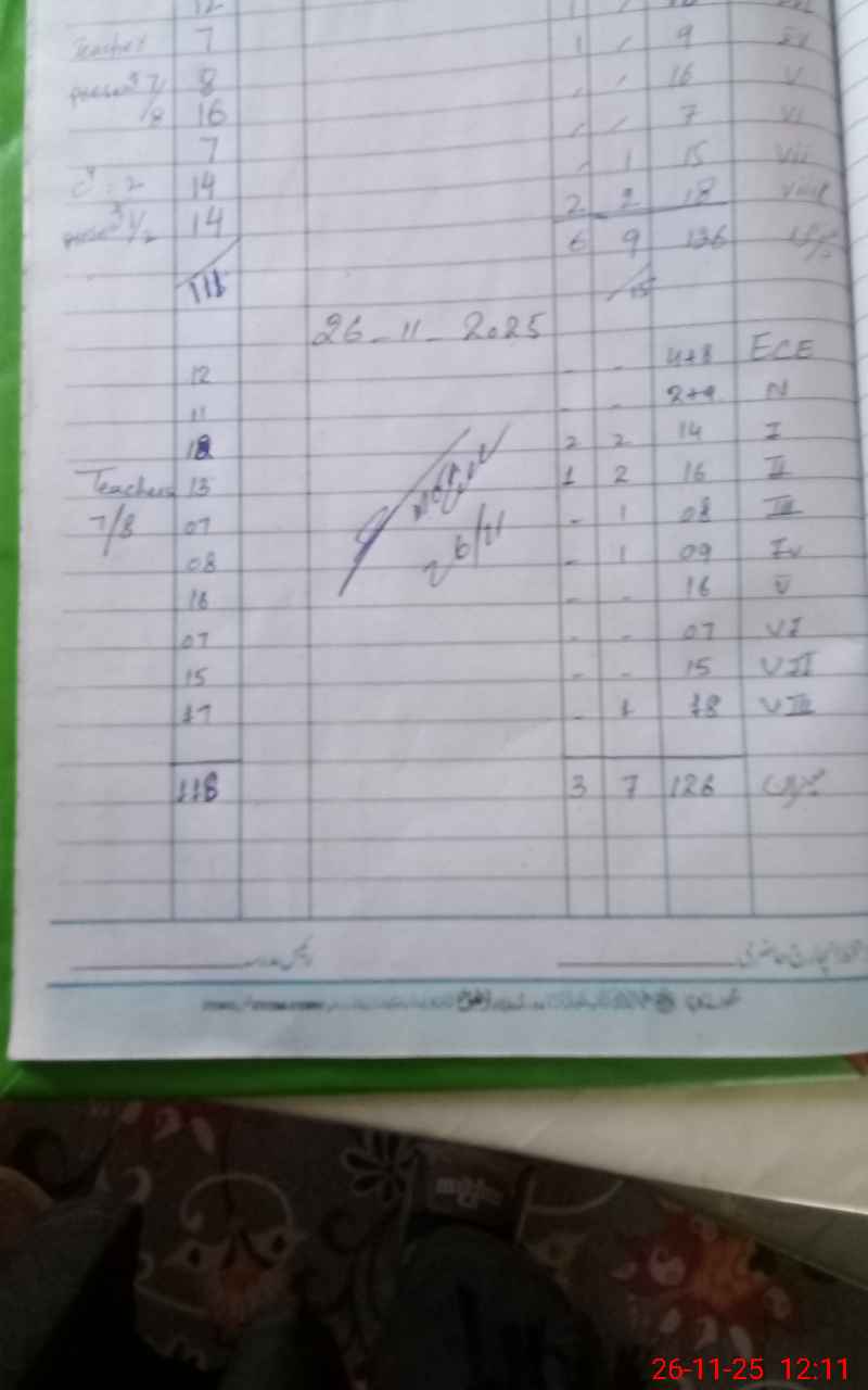 | Total no. of Classrooms: 5 No. of Classrooms Used for Teaching: 4 No. of Classrooms Storing Old Furniture, FTBs, etc: 0Comments if Any: Nil |
