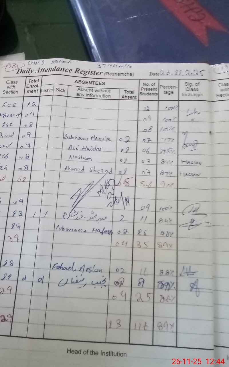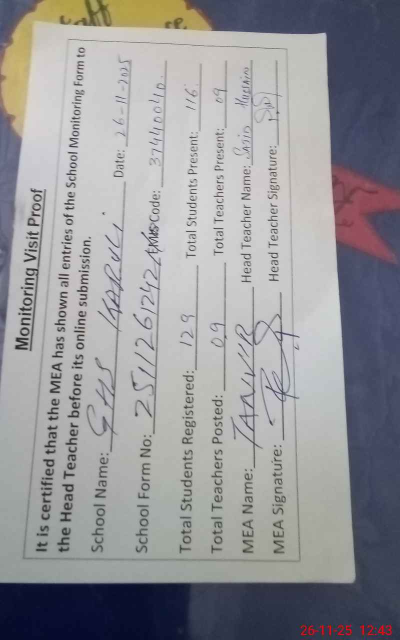 | Attendance Register | Head Teacher | MEA with School | Visit Proof |