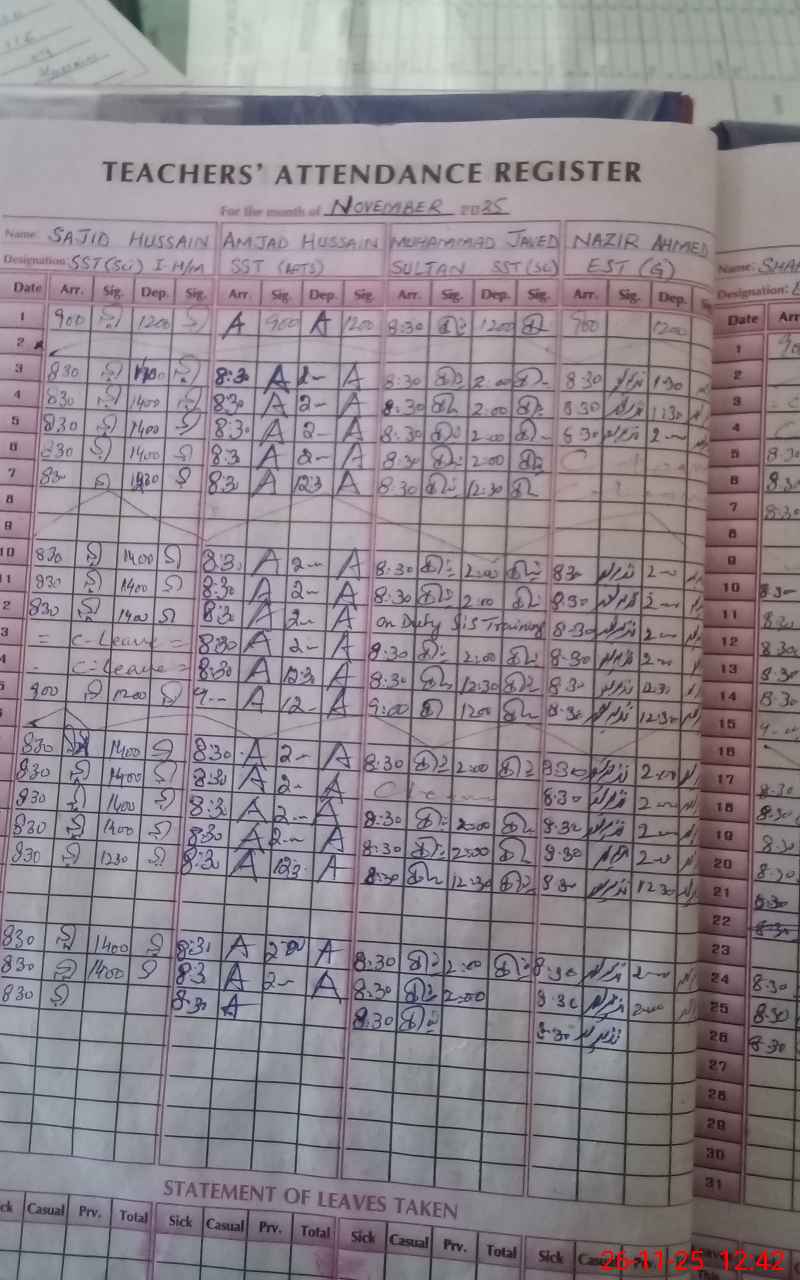 | CNIC | Full Name | Designation | R/C | Absence During Last Calender Month |