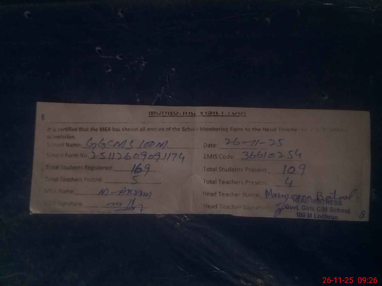 | EMIS Code: 36610254 | Name of School: GGCMS CHAK NO.100/M | |||