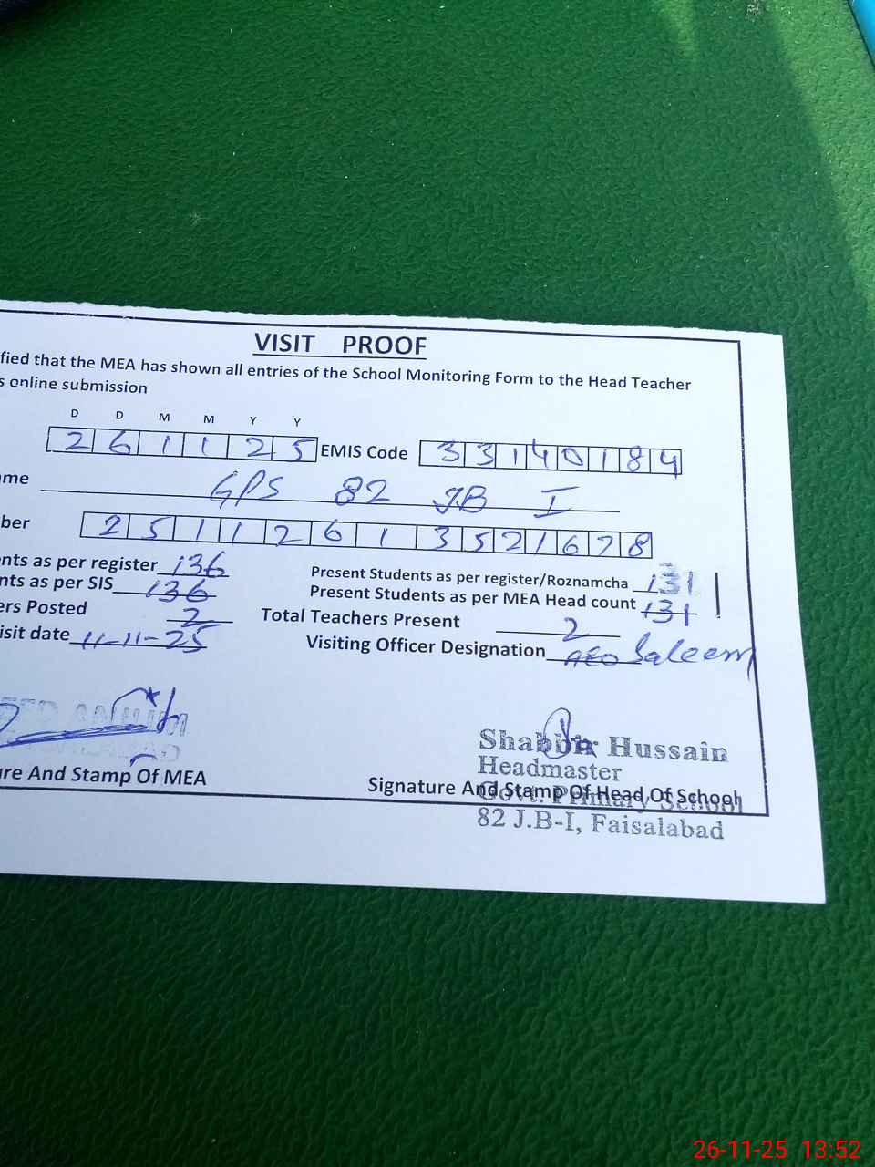 | EMIS Code: 33140184 | Name of School: GPS CHAK 82 JB I | |||