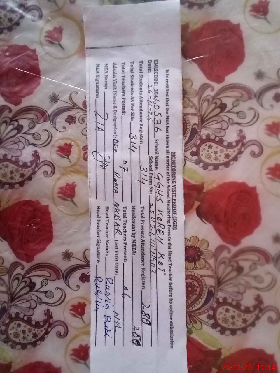 | EMIS Code: 38460536 | Name of School: GGHS KOREY KOT | |||
