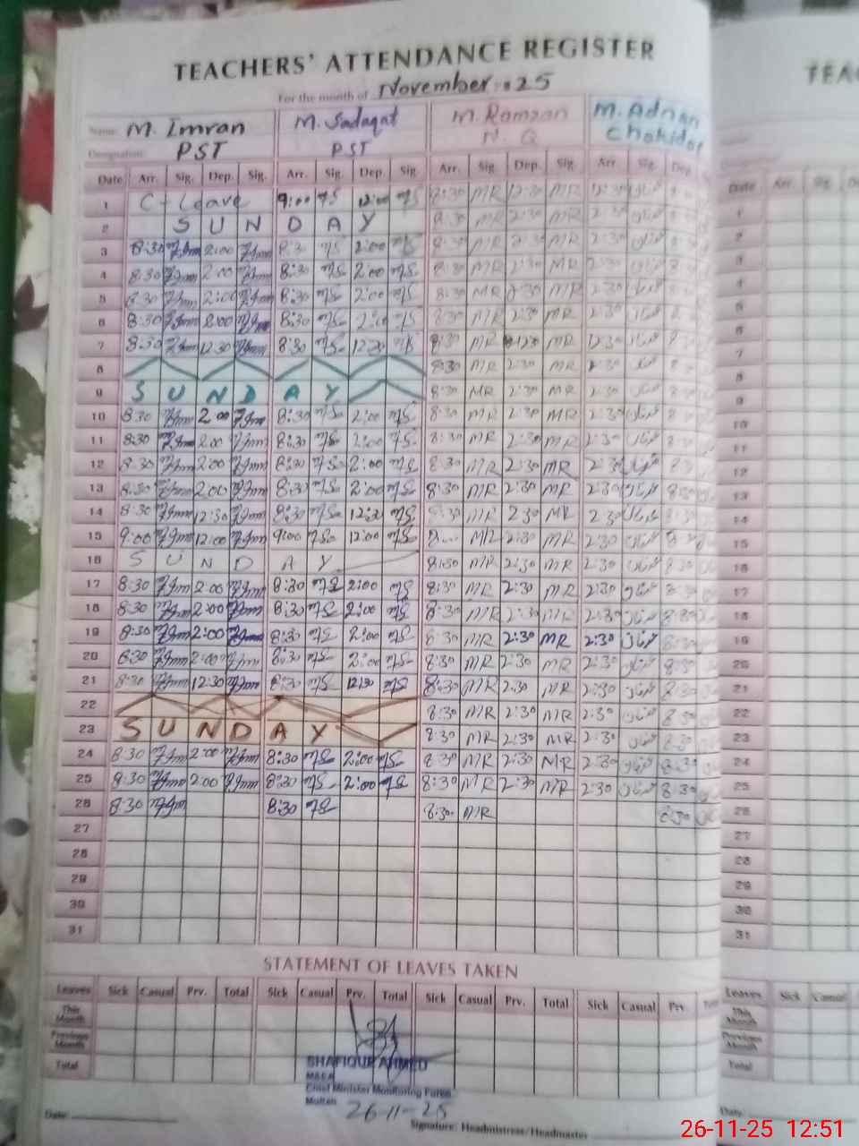 | Name: Mu**** Ir**** Designation: (School Headmaster's/Headmistress's) In charge Headmaster Phone/Cell Number: 03**** |