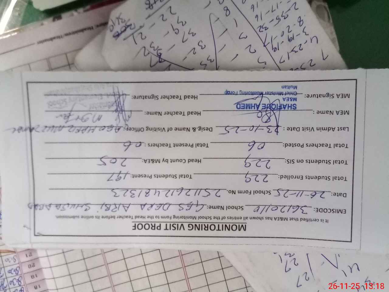 | Monitoring Date: 26-11-2025 | Start Time: 26-11-2025 12:48 PM | End Time: 26-11-2025 01:21 PM | Name of MEA: SH**** AH**** | |
