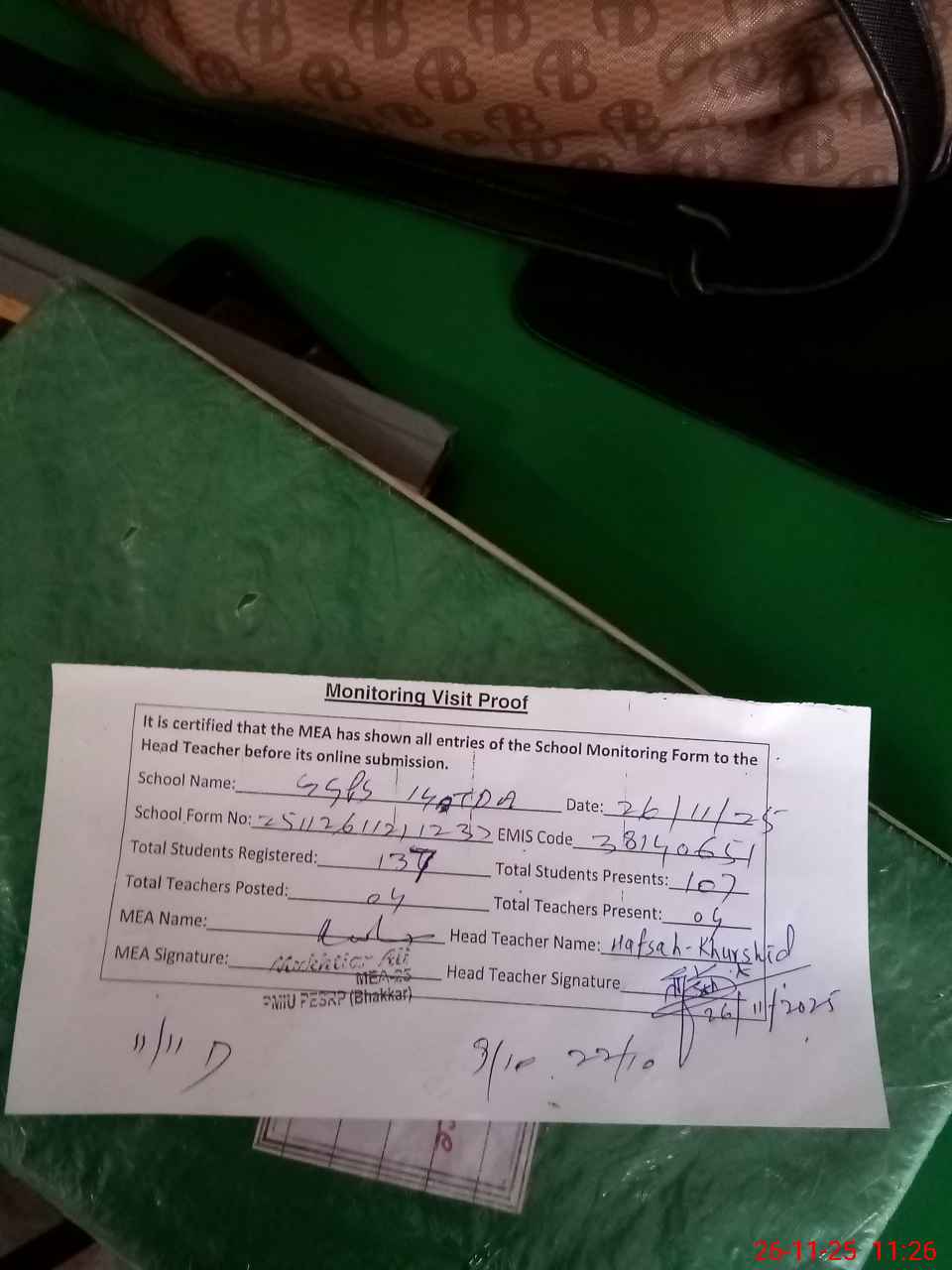 | Certified that this School was Inspected by the Undersigned MEA/DMO Today and the Information Stated Above is as Per Record. | |||||