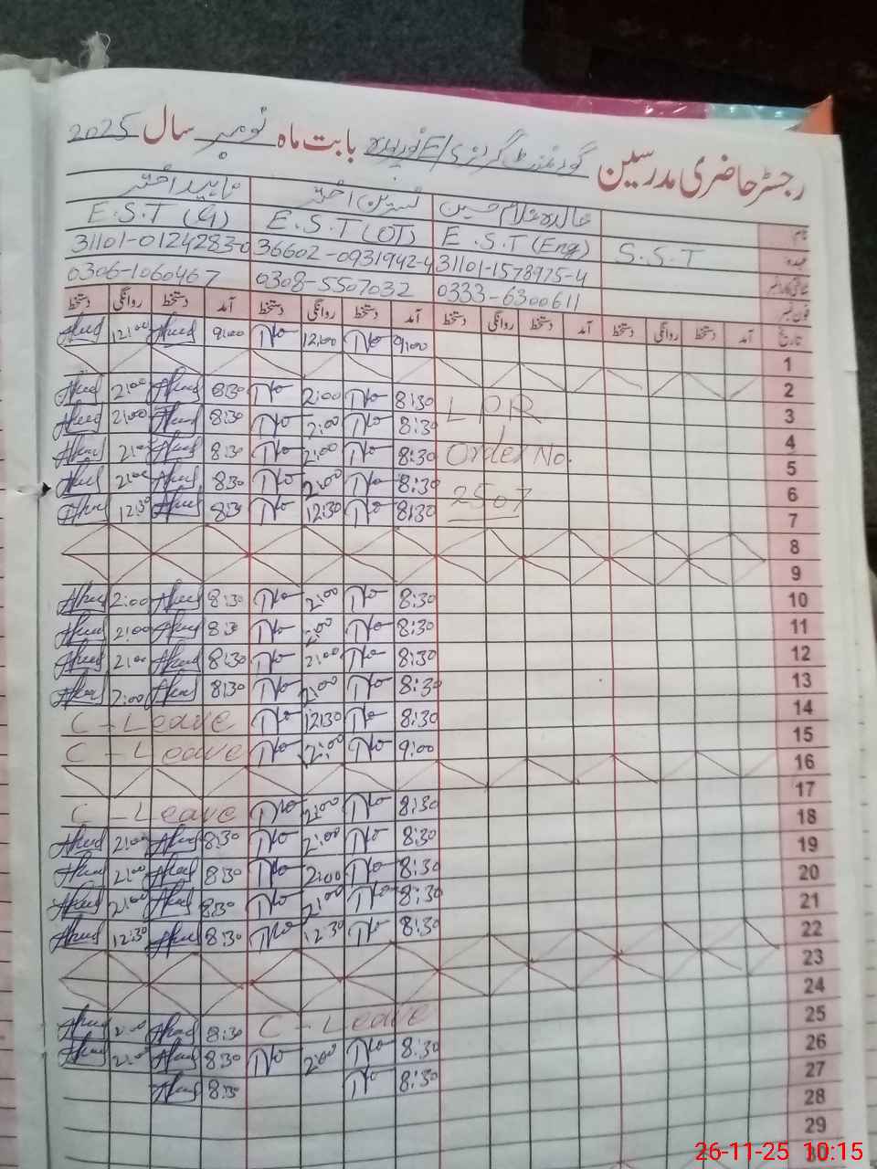| CNIC | Full Name | Designation | R/C | Absence During Last Calender Month |