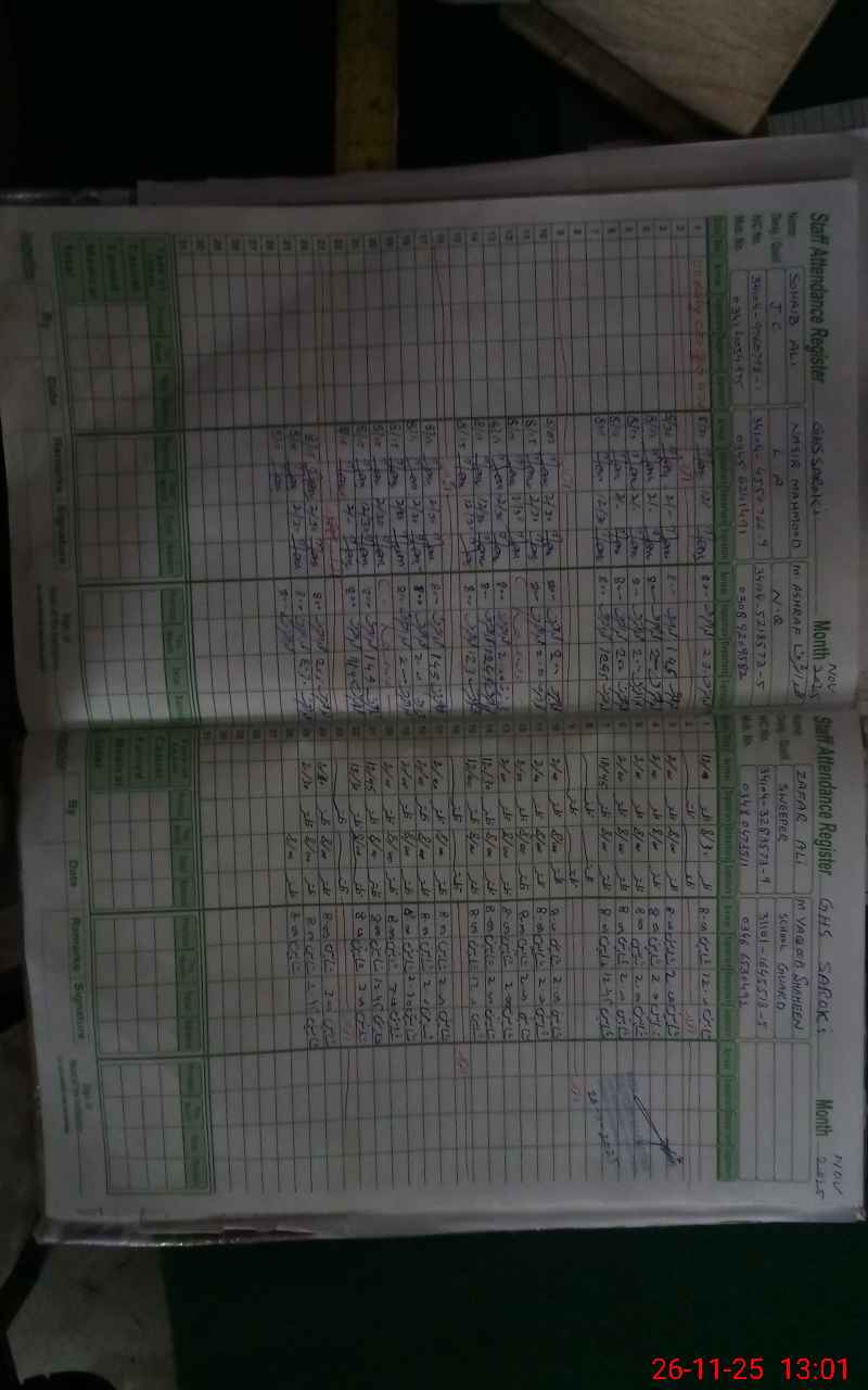 | CNIC | Full Name | Designation | R/C | Absence During Last Calender Month |