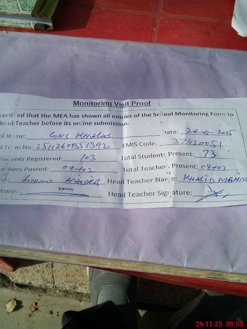 | EMIS Code: 37420051 | Name of School: GHS DHOK KHALAS | |||