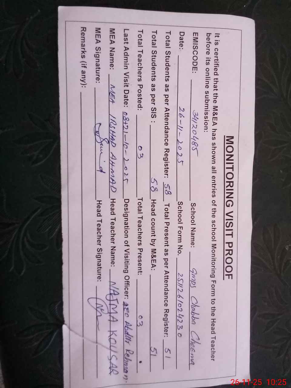 | EMIS Code: 34120485 | Name of School: GMPS CHABBA CHEEMA | |||