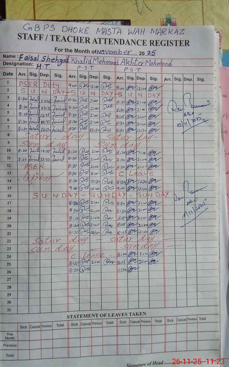 | Name: Fa**** Sh**** Designation: (School Headmaster's/Headmistress's) PST Phone/Cell Number: 03**** |