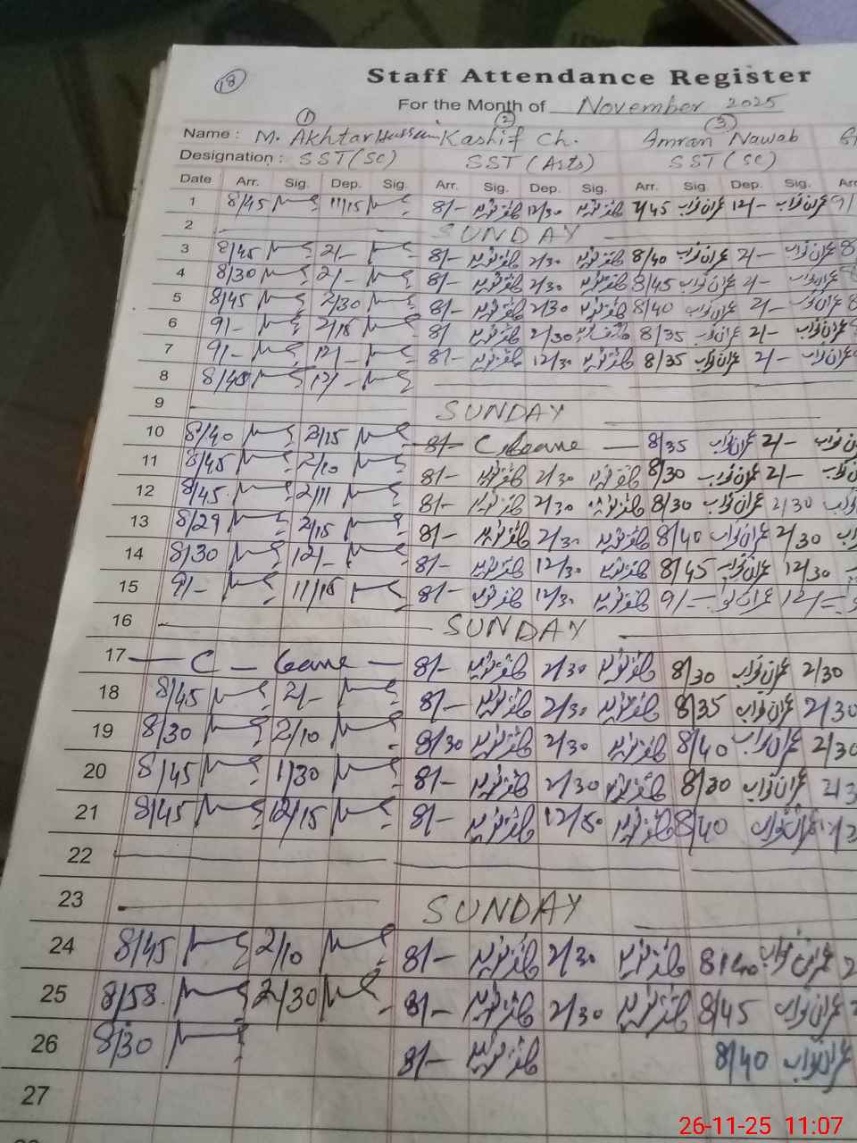 | Monitoring Date: 26-11-2025 | Start Time: 26-11-2025 10:09 AM | End Time: 26-11-2025 11:09 AM | Name of MEA: M.**** AK**** | |