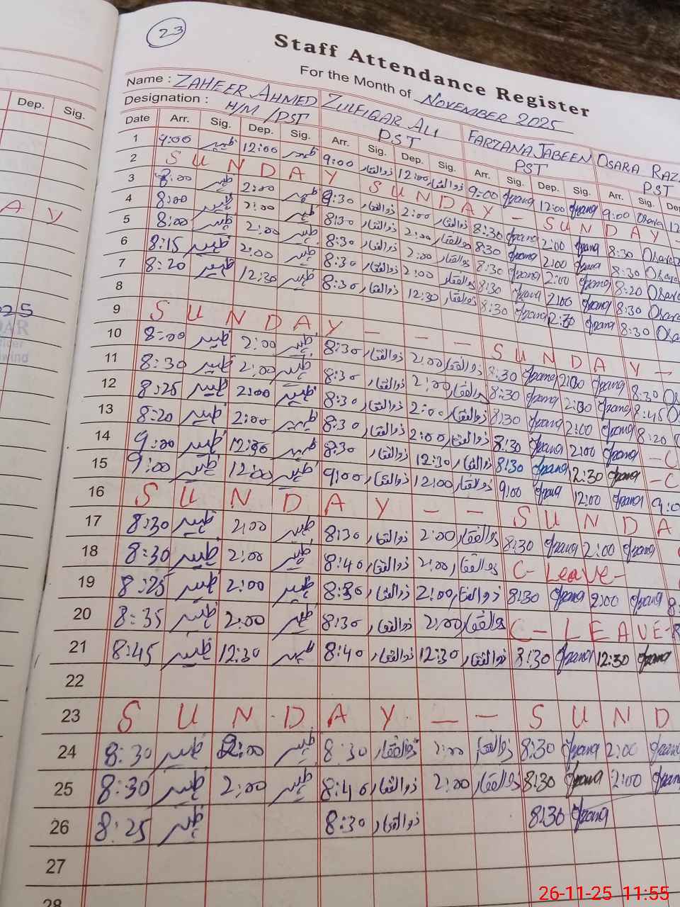 | CNIC | Full Name | Designation | R/C | Absence During Last Calender Month |