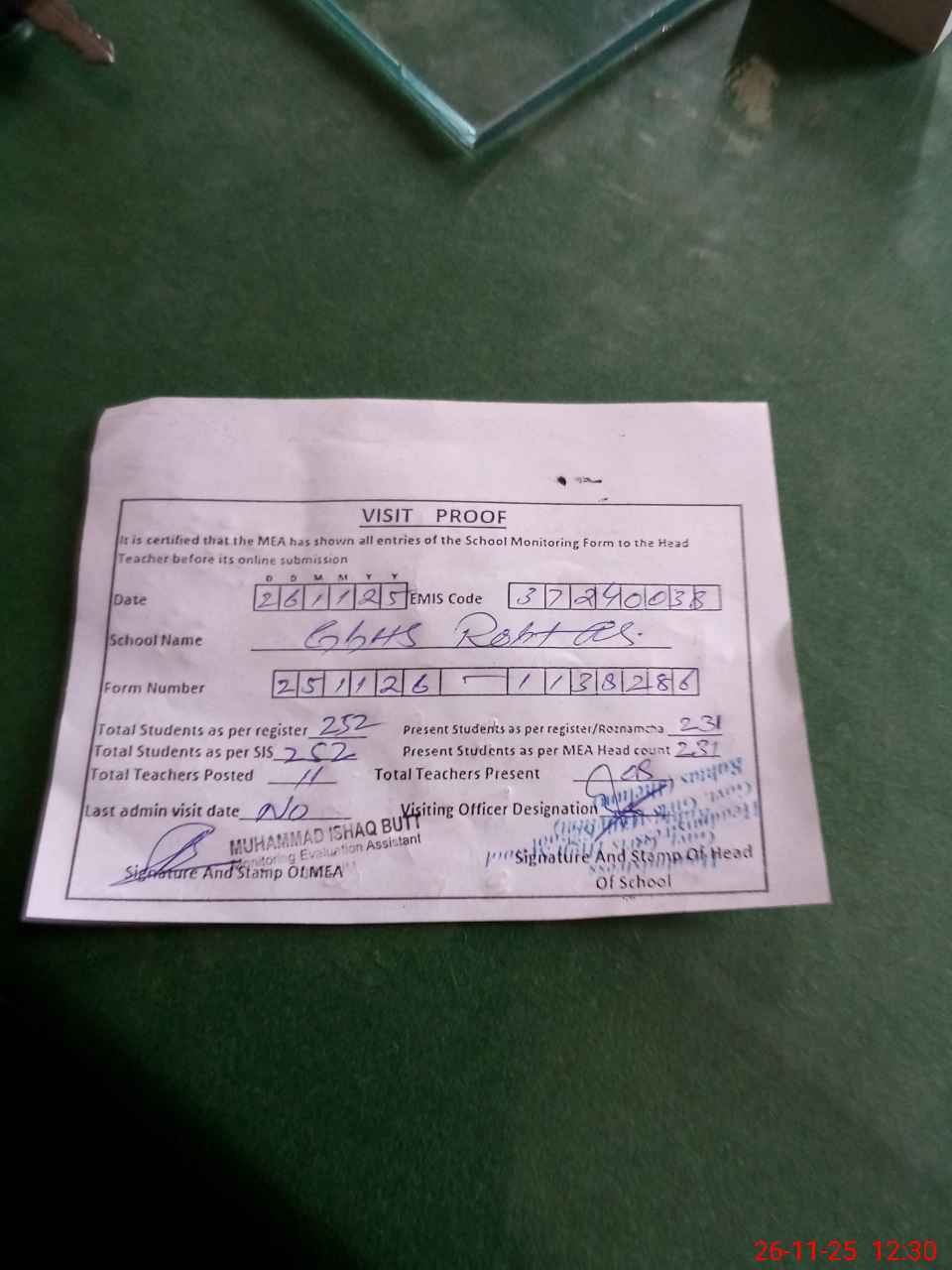 | EMIS Code: 37240038 | Name of School: GGHS ROHTAS | |||