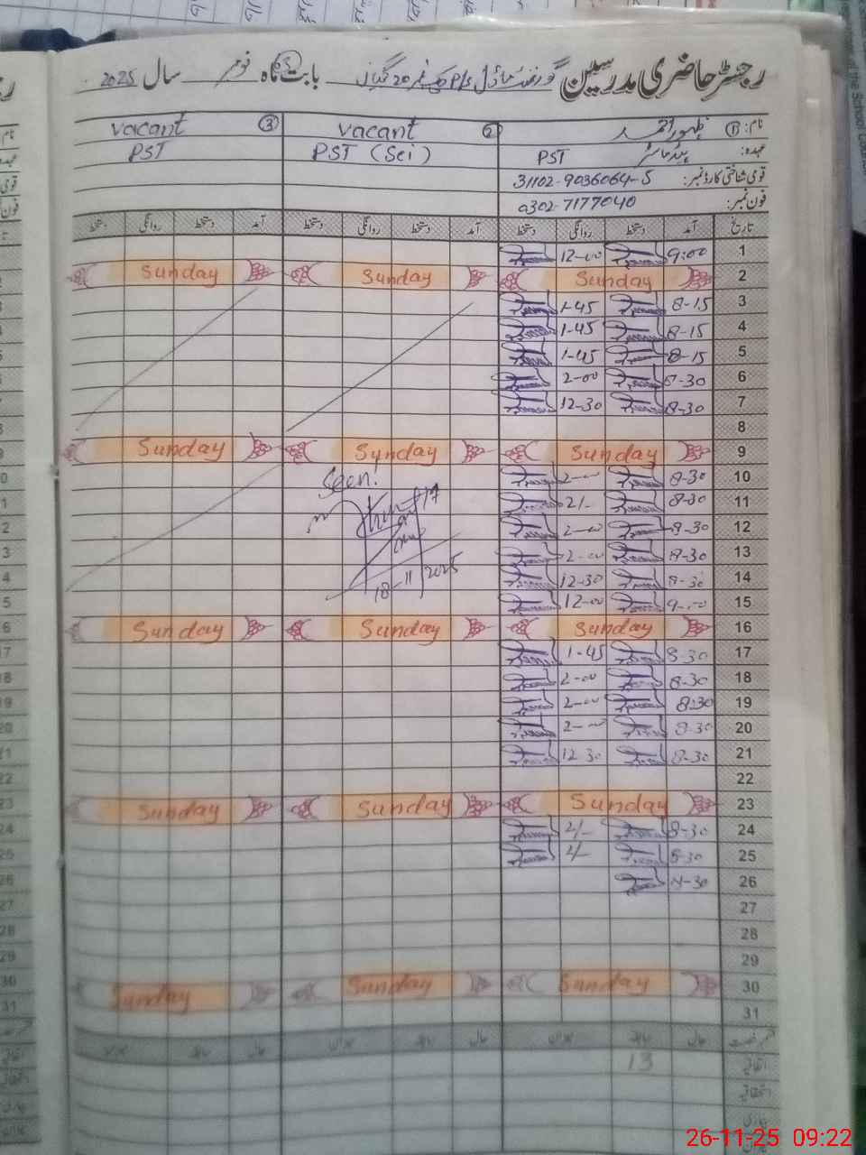 | Name: Za**** Ah**** Designation: (School Headmaster's/Headmistress's) PST Phone/Cell Number: 03**** |