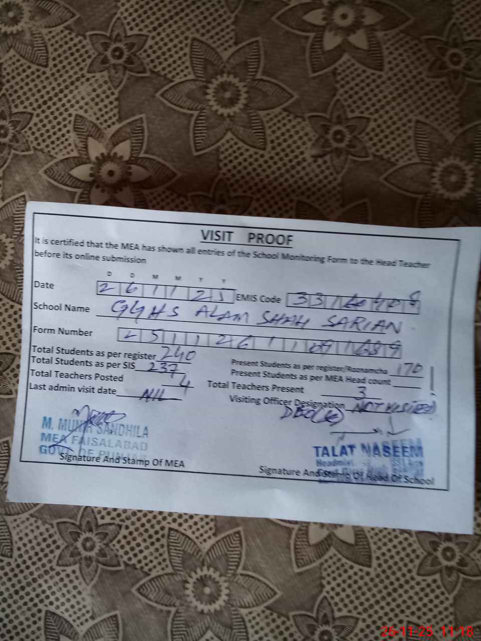 | EMIS Code: 33160408 | Name of School: GGHS ALAM SHAH SARIAN | |||