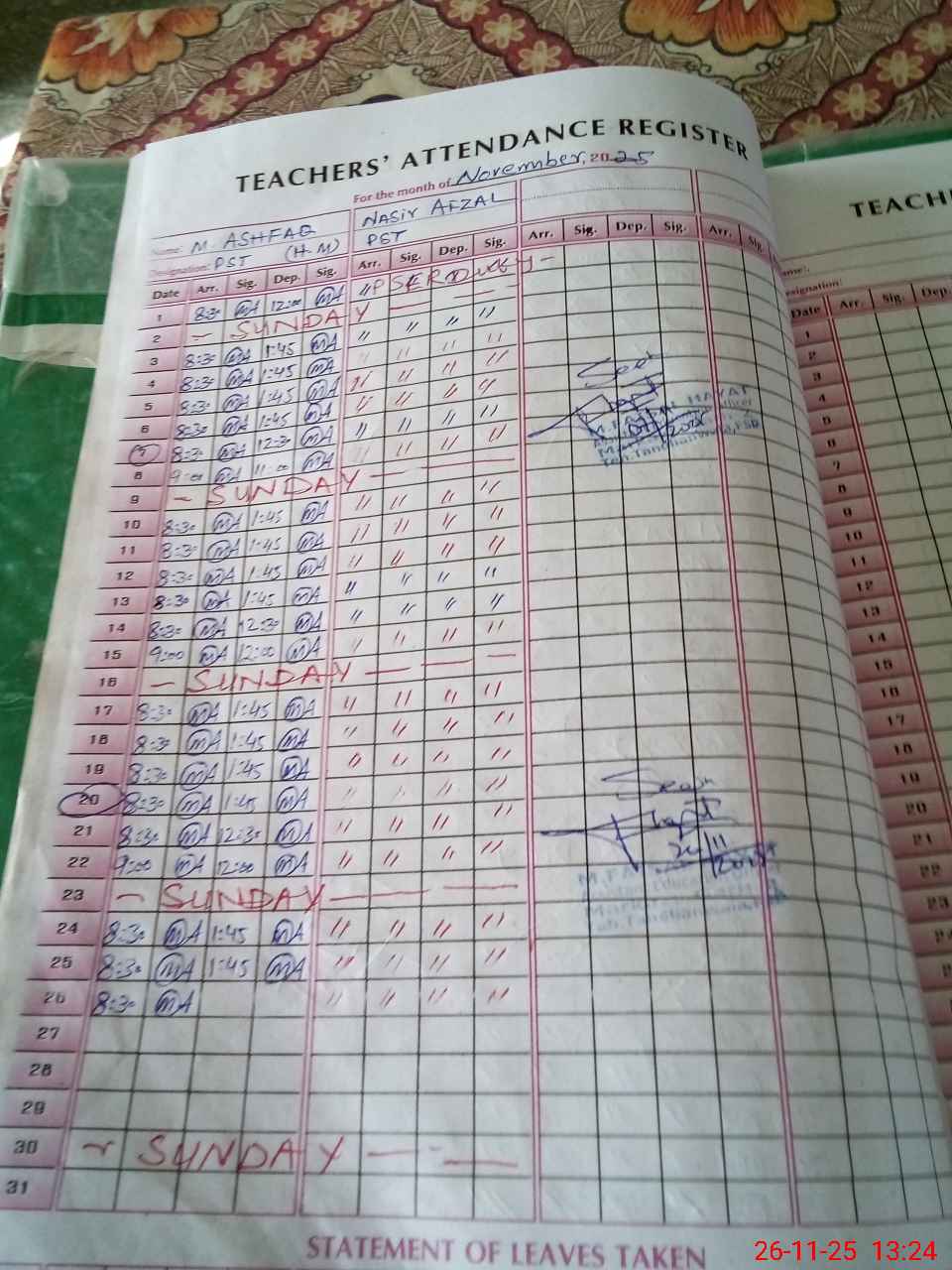 | Name: MU**** AS**** Designation: (School Headmaster's/Headmistress's) PST Phone/Cell Number: 03**** |