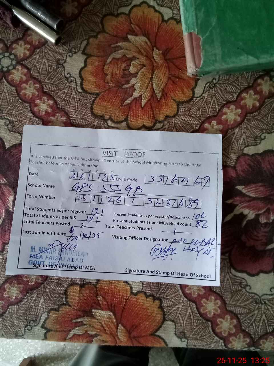 | Certified that this School was Inspected by the Undersigned MEA/DMO Today and the Information Stated Above is as Per Record. | |||||