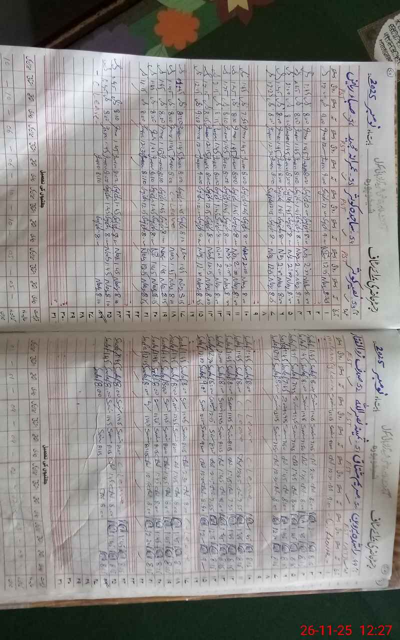 | CNIC | Full Name | Designation | R/C | Absence During Last Calender Month |