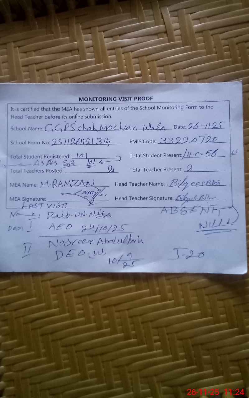 | EMIS Code: 33220720 | Name of School: GGPS CHAH MOCHIAN WALA | |||