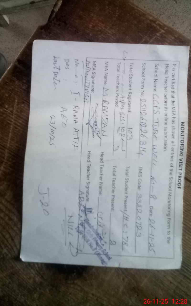 | EMIS Code: 33220723 | Name of School: GGPS TUBE WELL NO 8 | |||