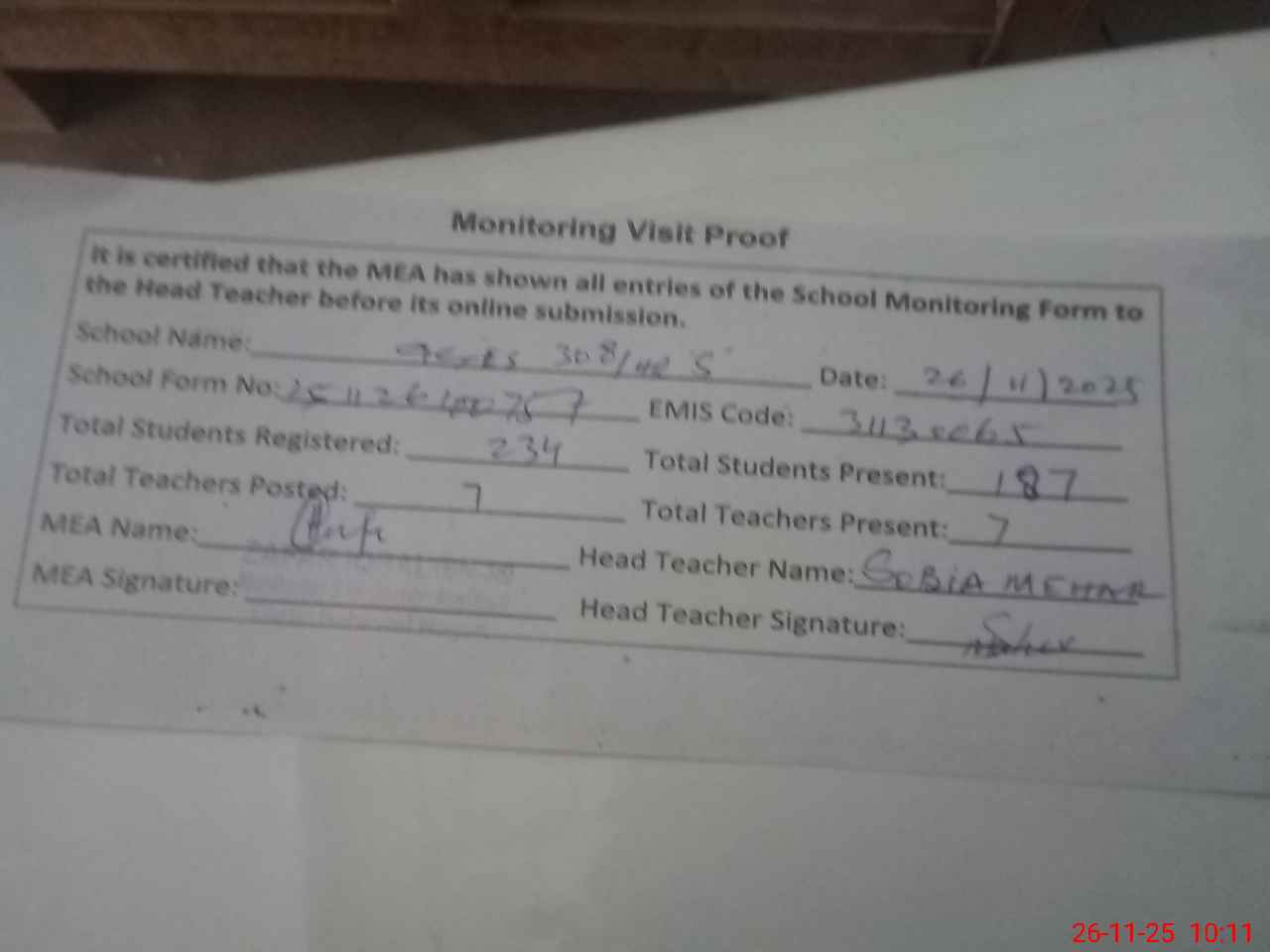 | Certified that this School was Inspected by the Undersigned MEA/DMO Today and the Information Stated Above is as Per Record. | |||||