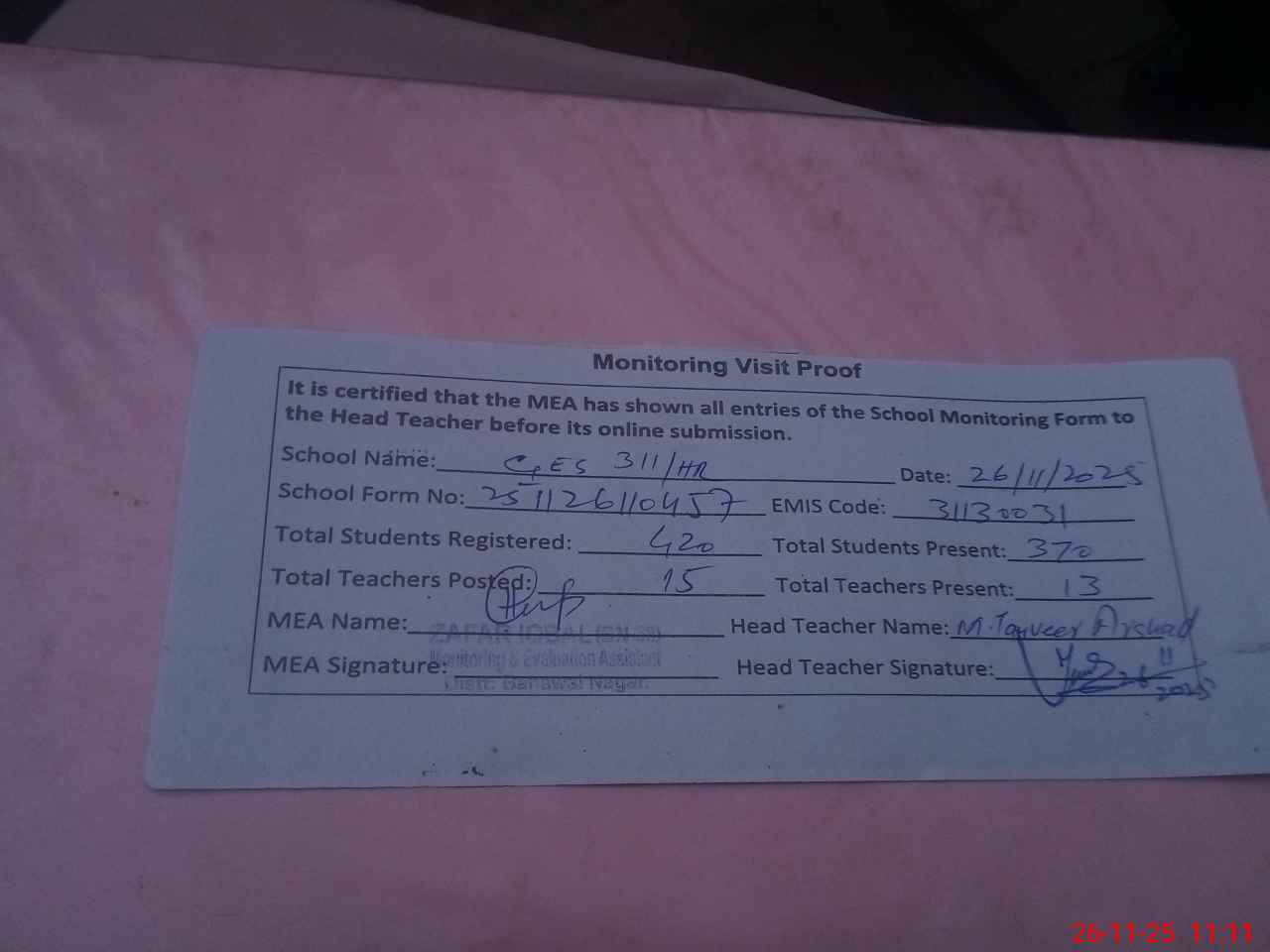 | EMIS Code: 31130031 | Name of School: GES CHAK 311/HR | |||