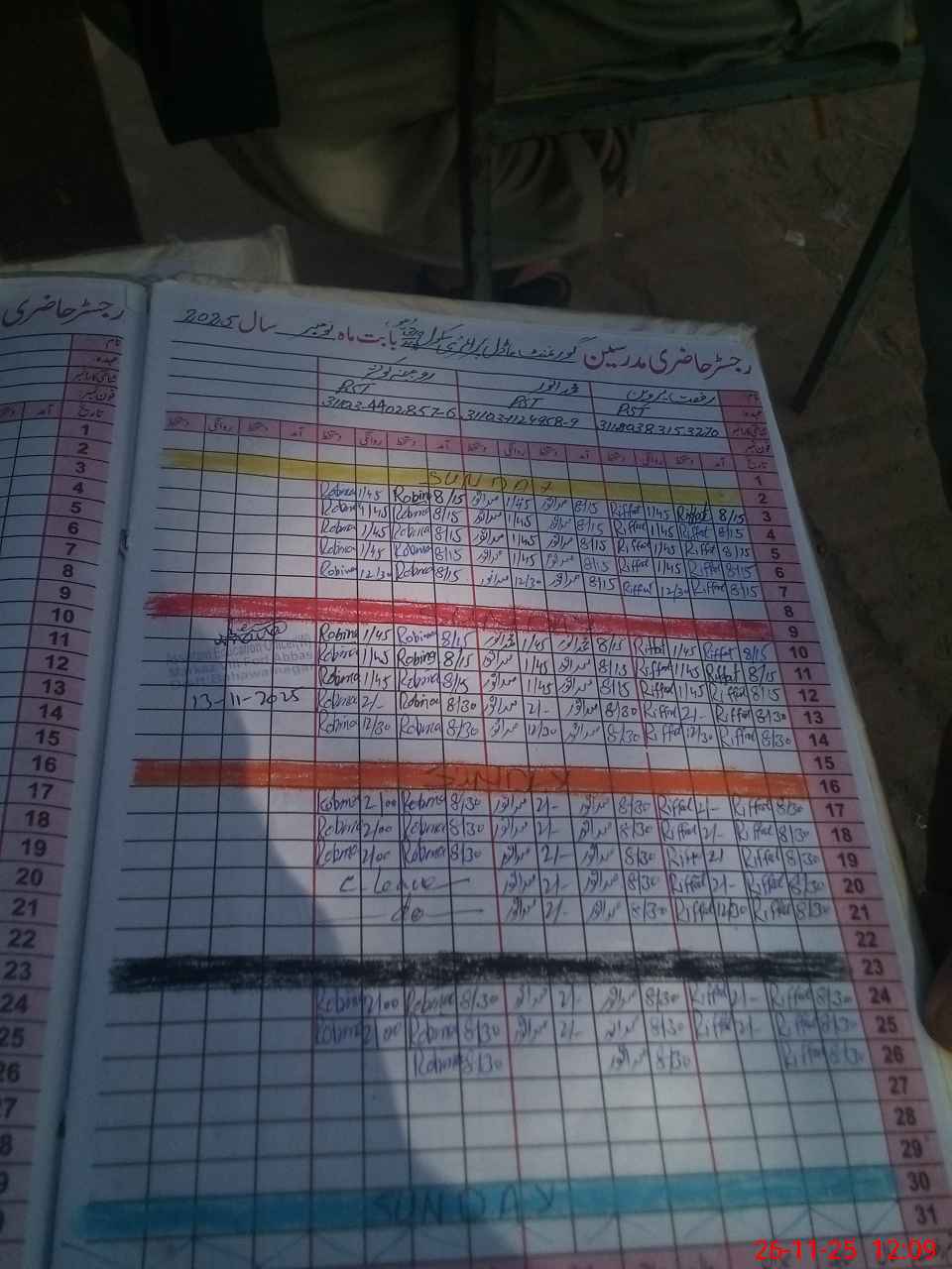| CNIC | Full Name | Designation | R/C | Absence During Last Calender Month |