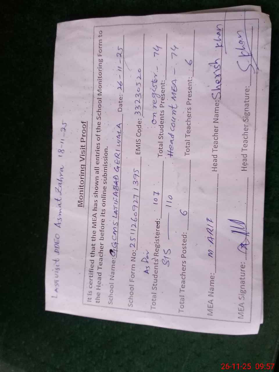 | EMIS Code: 33230520 | Name of School: GGCMS LATIF ABAD (GERI WALA) | |||