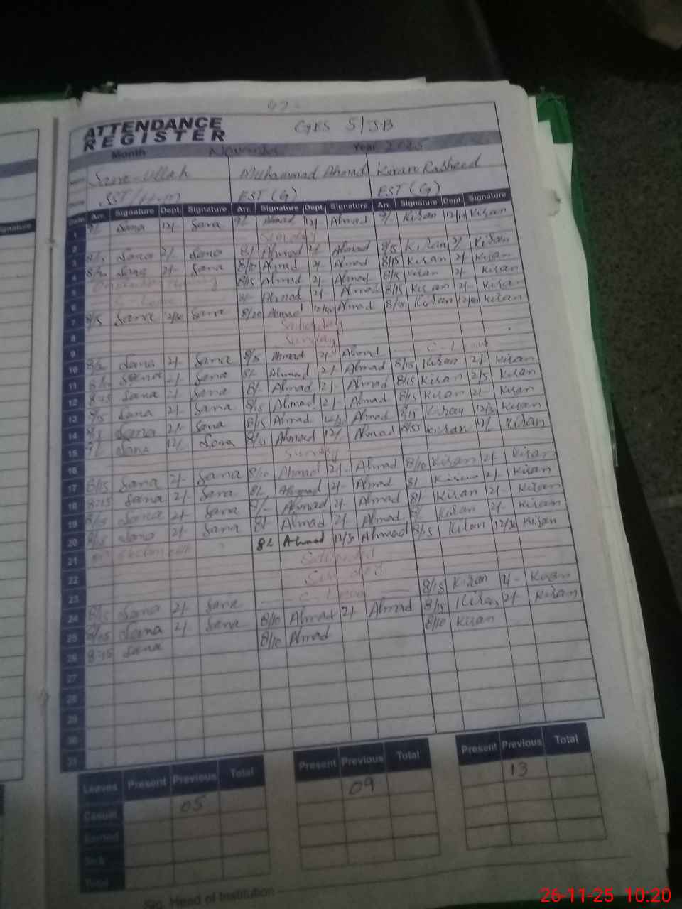 | Remarks (Use Separate Page if Required): EST Naseer Ahmed on LPR wef 13 -3- 2025 PST Muhammad Javed on LPR wef 08-11-2025 | |||||