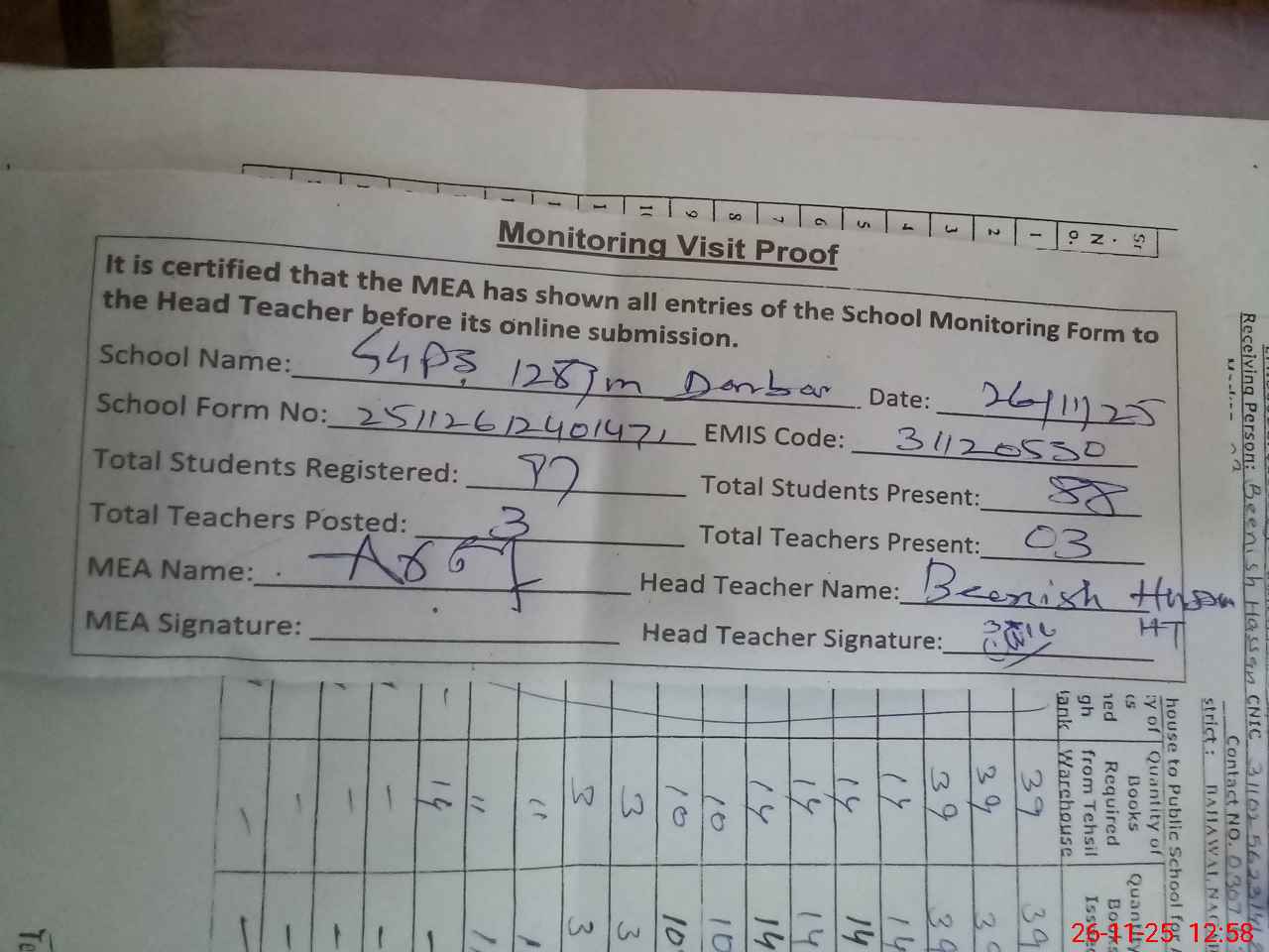 | Monitoring Date: 26-11-2025 | Start Time: 26-11-2025 12:40 PM | End Time: 26-11-2025 12:58 PM | Name of MEA: AR**** AL**** DI**** BN**** | |