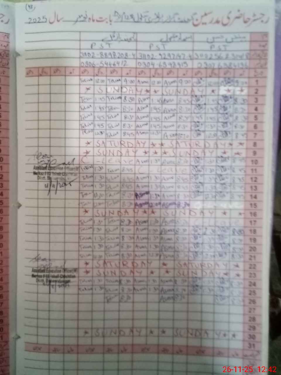 | Name: BE**** HA**** Designation: (School Headmaster's/Headmistress's) PST Phone/Cell Number: 03**** |