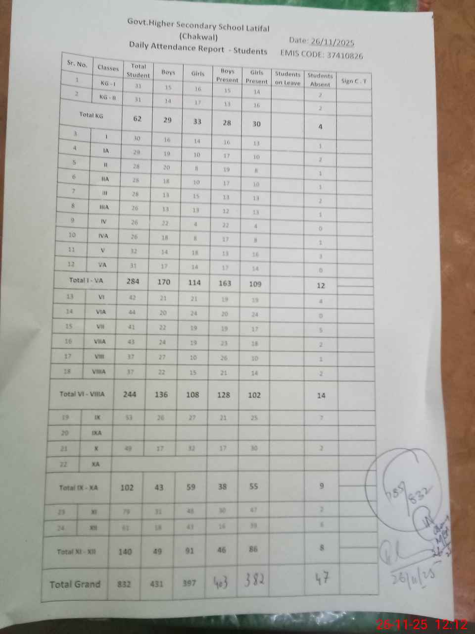 | EMIS Code: 37410826 | Name of School: GHSS LATIFAL CHAKWAL | |||