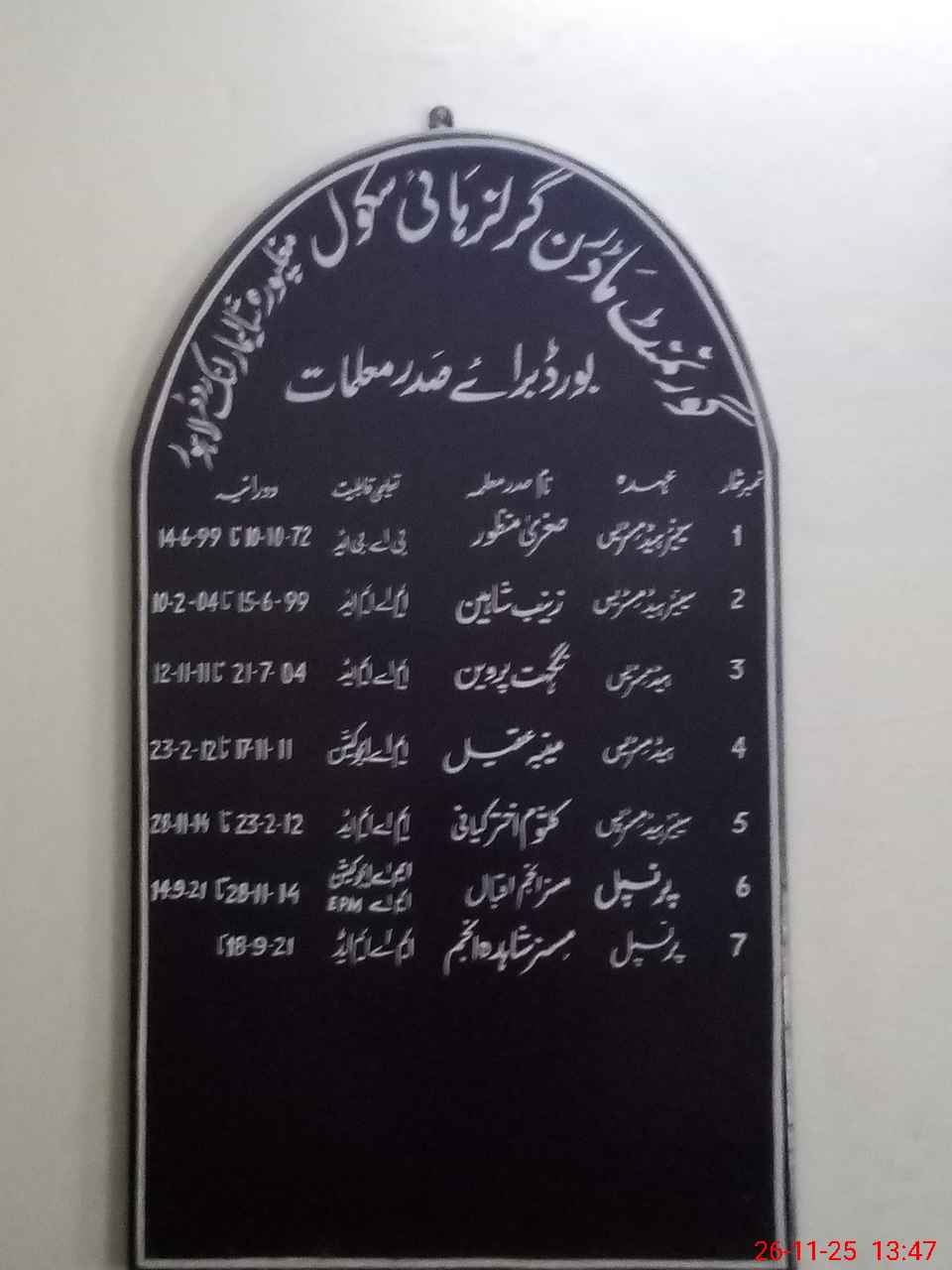 | EMIS Code: 35210072 | Name of School: GGHS MODERN MUGHALPURA, SHALIMAR LINK ROAD | |||