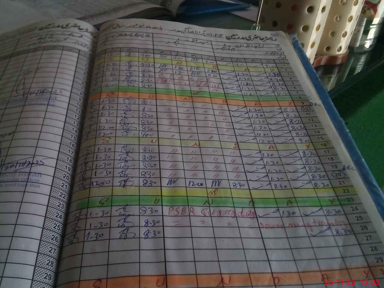 | CNIC | Full Name | Designation | R/C | Absence During Last Calender Month |