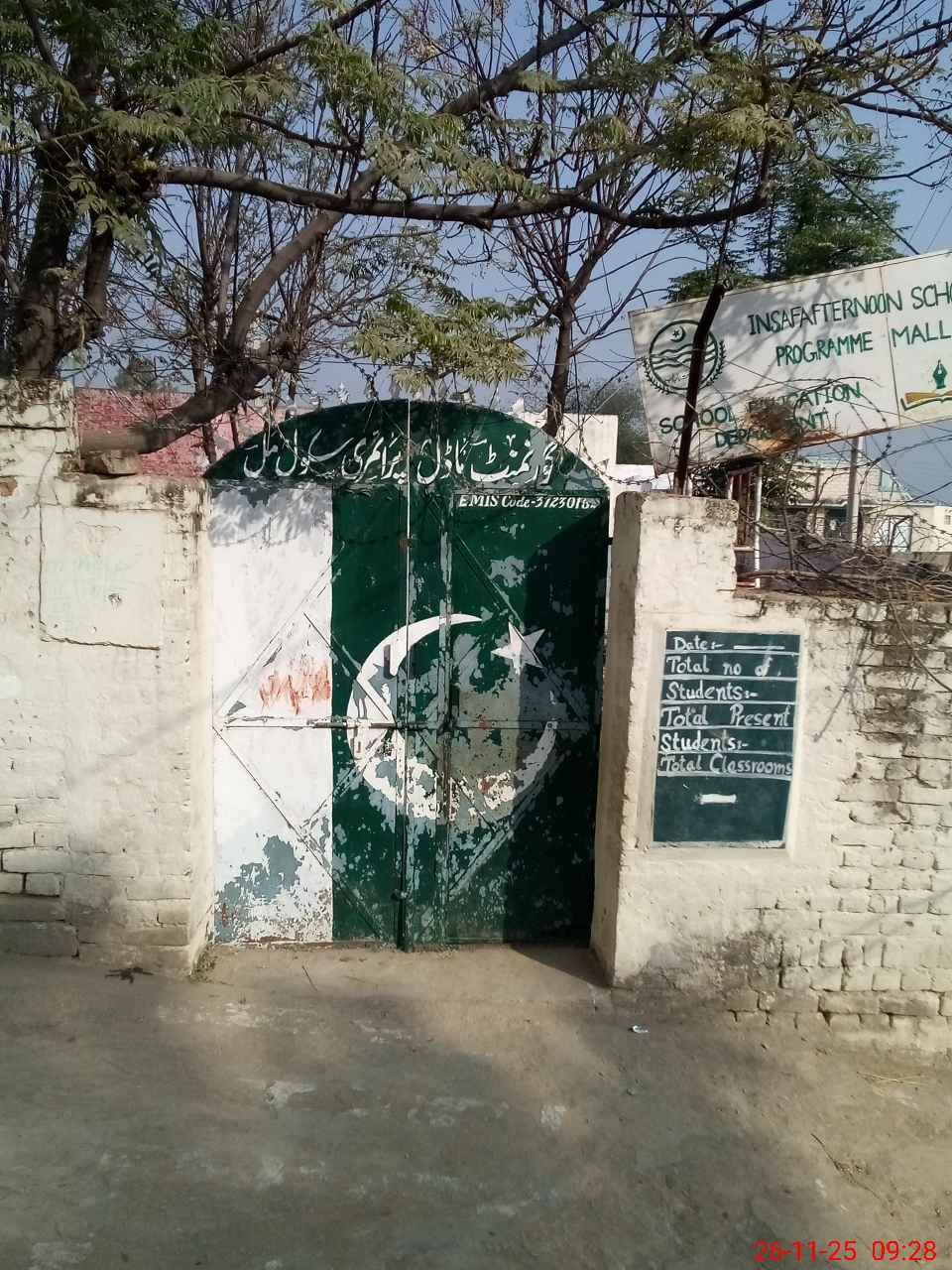 | Total no. of Classrooms: 7 No. of Classrooms Used for Teaching: 4 No. of Classrooms Storing Old Furniture, FTBs, etc: 0Comments if Any: 03 in no class rooms became dangerous due to heavy rain and cracks are visible from both sides Boundary wall fell down approximately 130 feet in length |