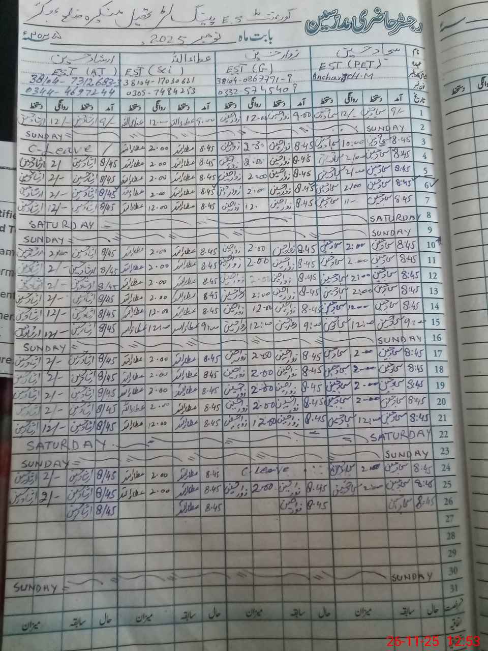 | Name: MU**** IQ**** Designation: (School Headmaster's/Headmistress's) SSE(URDU) Phone/Cell Number: 03**** |