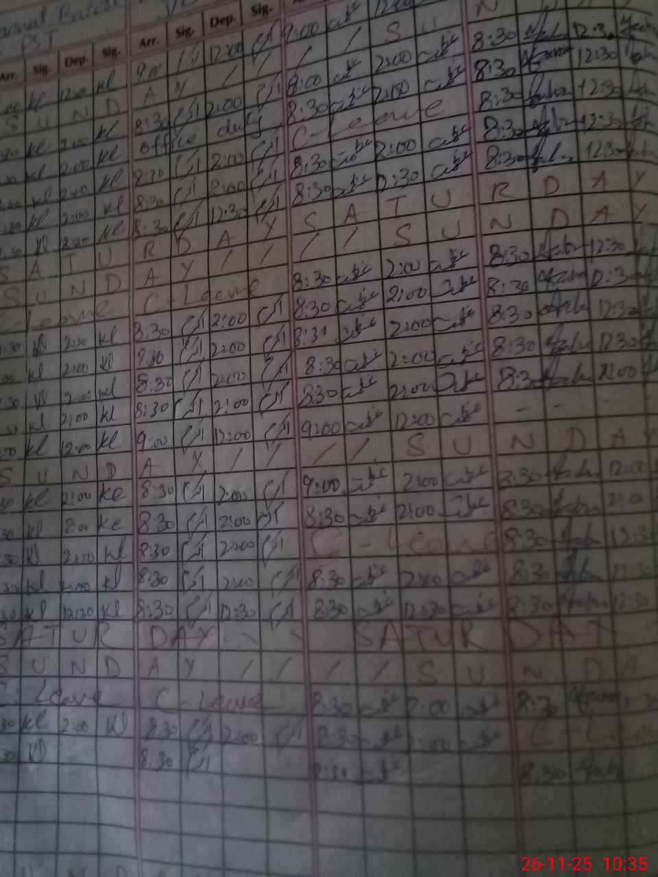 | Leave | Duty | Absent | Maternity | Medical | Ex- Pak |